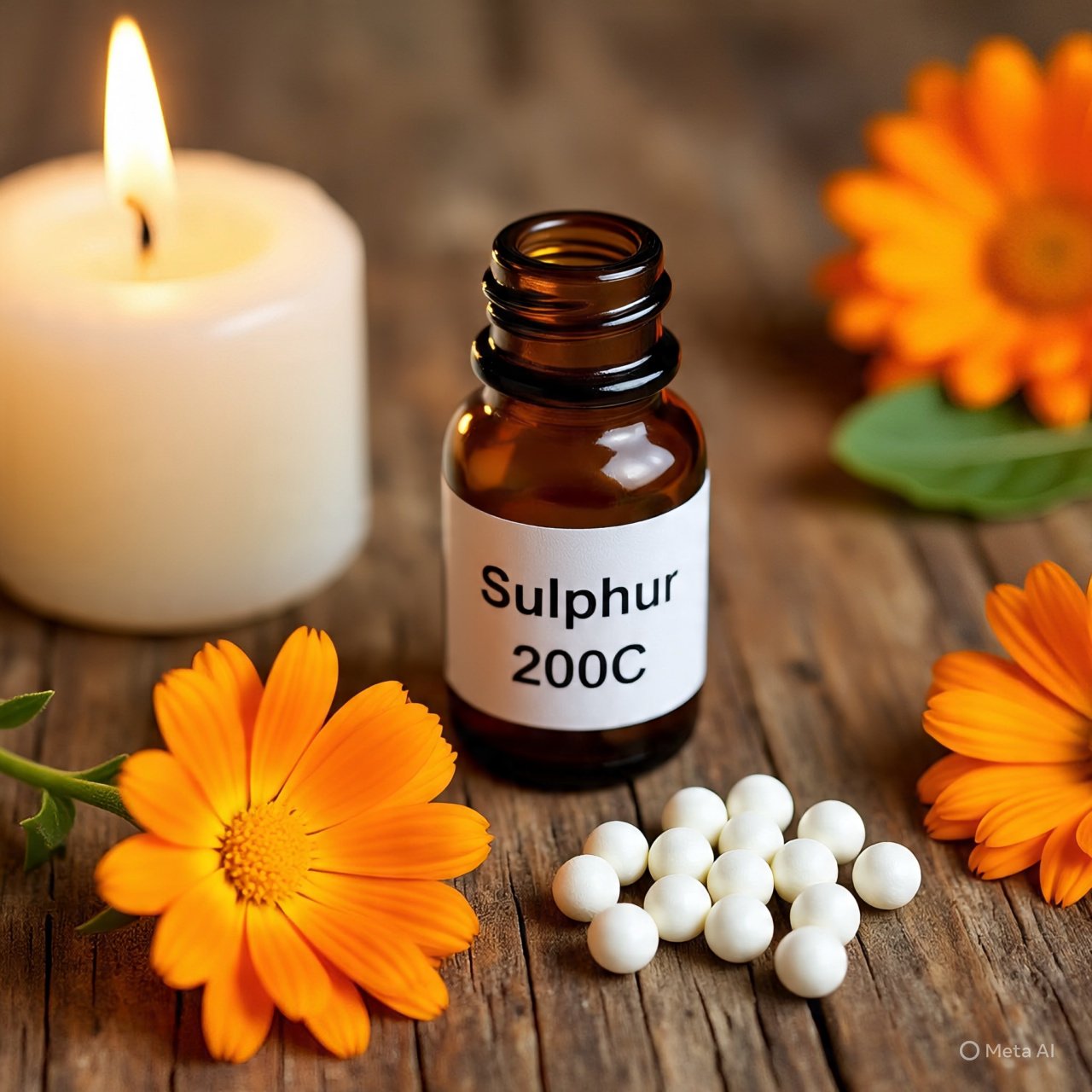 Sulphur is a constitutional homeopathic remedy often used for skin conditions, burning sensations, itching, and chronic ailments. It is suitable for individuals who are intellectual, tend to be messy, feel hot, and often have strong body odor or offensive discharges.